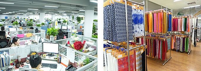 Rapid design More than 100 senior designers, drawing and plate making engineers, have made fashion inspiration becomes reality fast. Quick sampling 17 professional sample production line, let "drawing" to "lace cloth" in the first time. Rapid production 7 big factories with production capacity 30 million M/year, a whole industry chain configuration, no need to worry about big orders delivery time. Rapid logistics with 20000㎡ modern warehouse, and good cooperation with well-known logistics company, to ensure fast delivery of goods. Fast service 100 person consultant team, 1 to 1 customers’ service, to let customers feel relieved and convenient is our service objective.