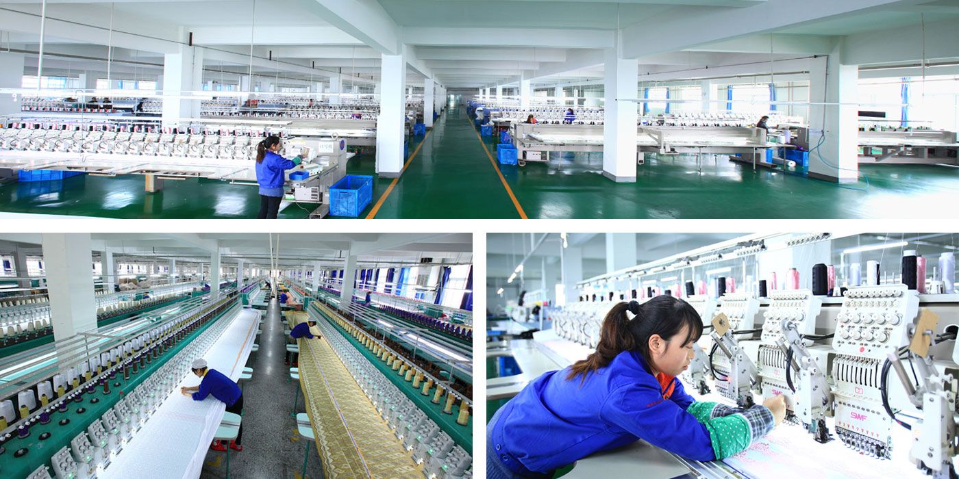 With investment of USD50,000,000, our factory boasts 40,000 square meters workshop, advanced 400 multi-head embroidery machines and 27 rotating machines which exported from Switzerland and Japan. There are more than 3,000 working staff at present, including 100 employees who are professional at R&D.