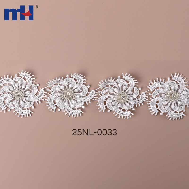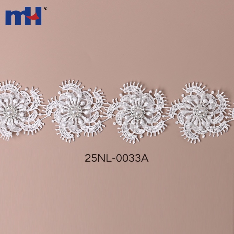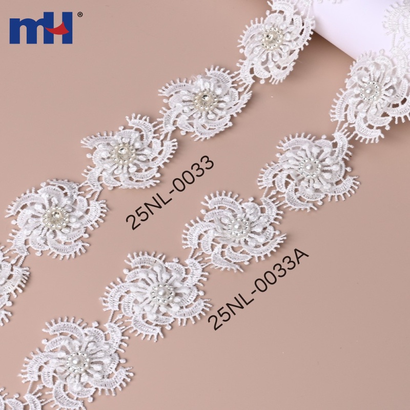 Whether you choose the timeless pearl version or the glamorous rhinestone version, our floral lace trim will bring a luxurious touch to your fashion collections and bridal designs.