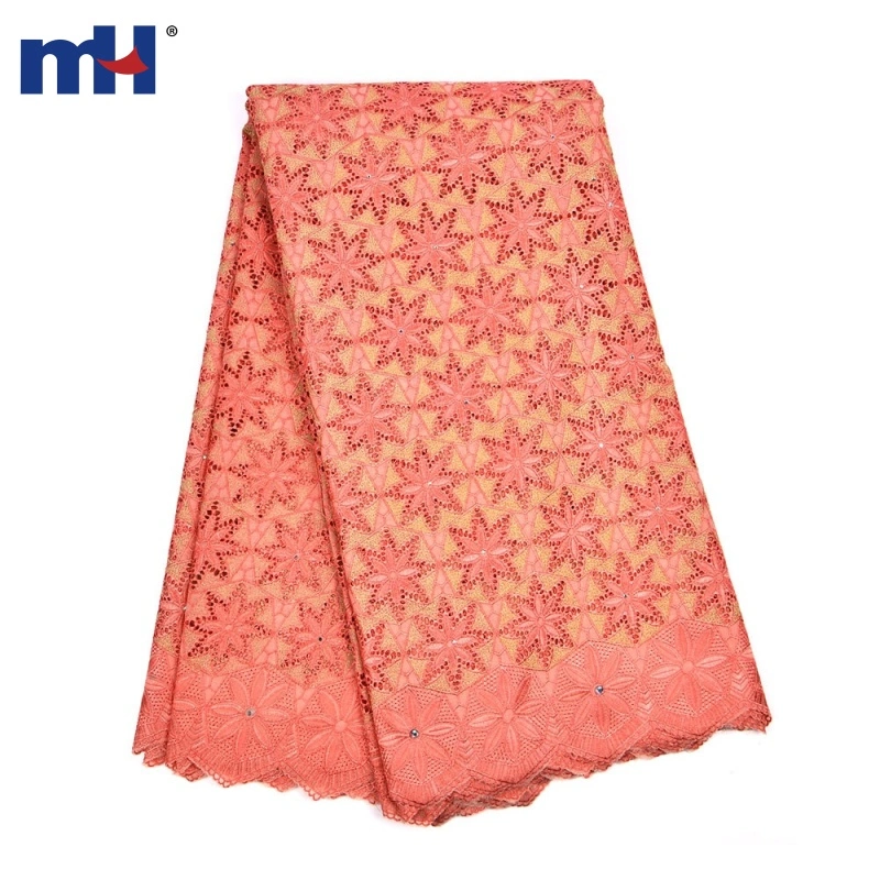 African guipure swiss voile lace fabric is a beautiful and luxurious type of lace fabric that is widely used in fashion and clothing design. It originated from Africa and has become increasingly popular in the fashion industry due to its unique texture and intricate designs.