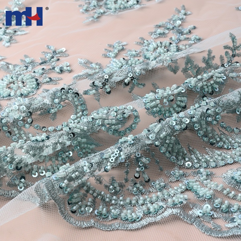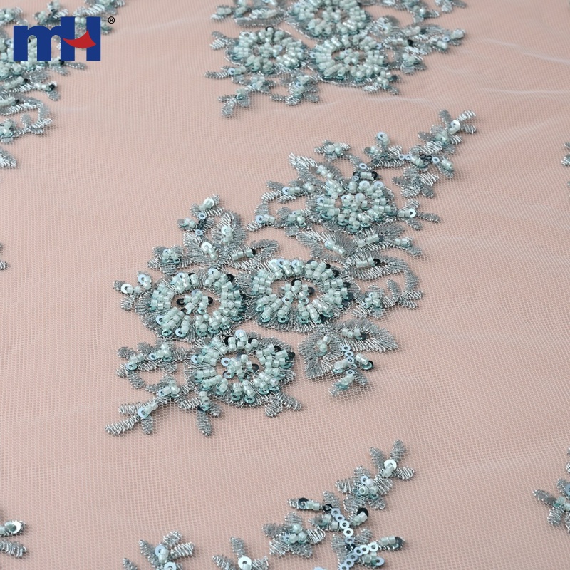| Material | Polyester mesh base with beads & sequins embroidery |
