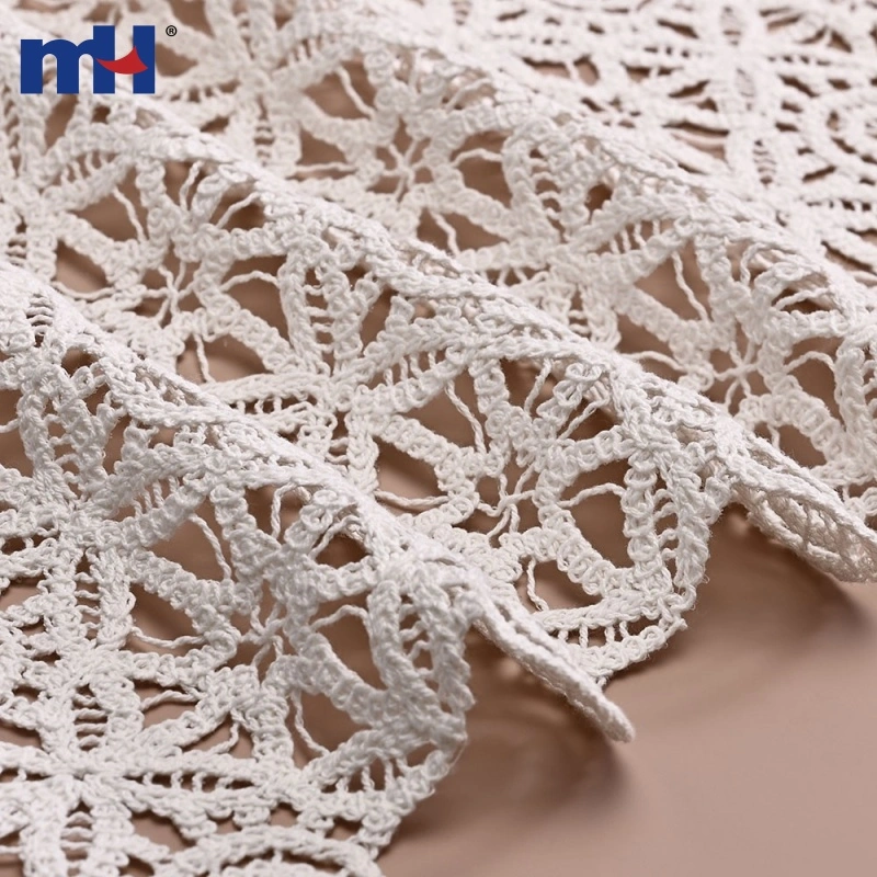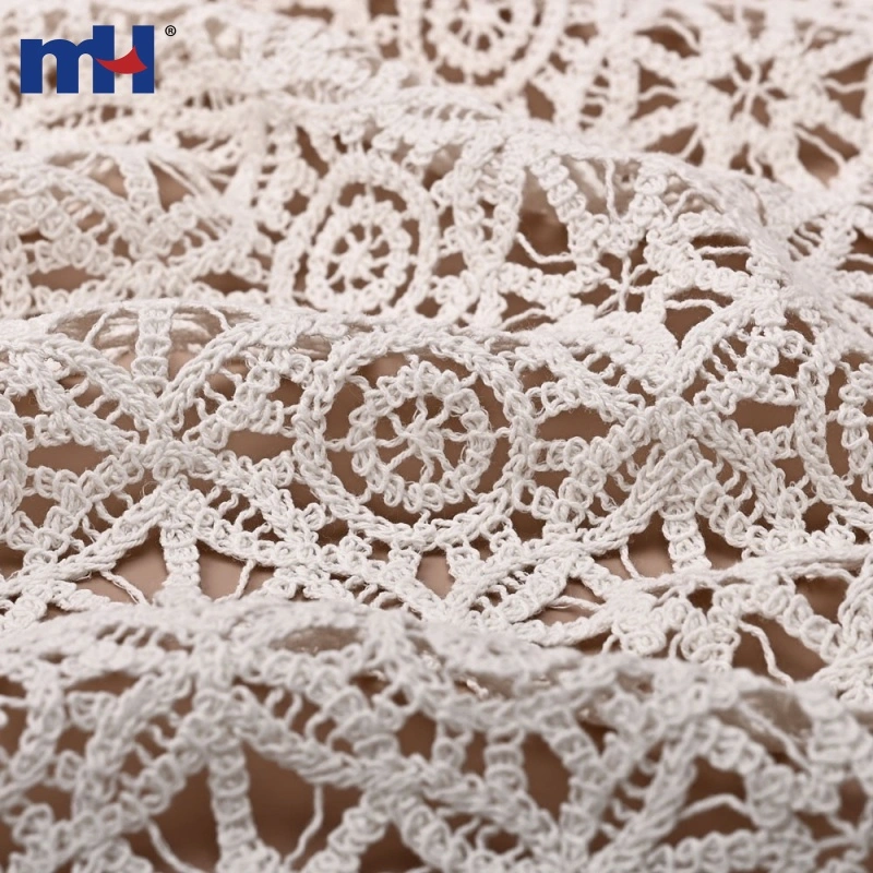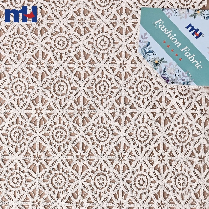 This Cotton Corded Guipure Lace Fabric features a delicate geometric floral pattern made with premium cotton cord embroidery on a water-soluble base. After washing, the base dissolves, leaving an intricate lace structure with a rich, three-dimensional texture.