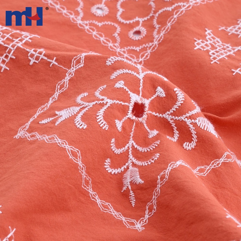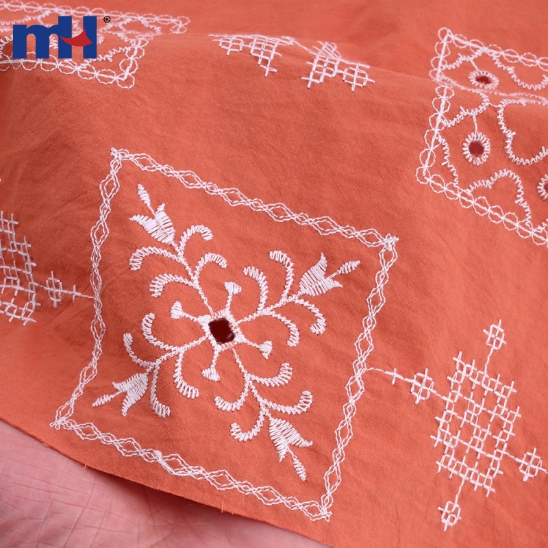 Made from high-density cotton, the fabric is comfortable, durable, and suitable for a wide range of apparel and decorative uses. The detailed embroidery gives it a refined look, perfect for both casual and elegant fashion designs.