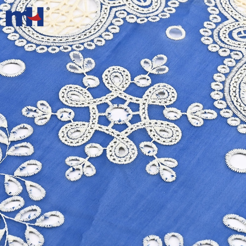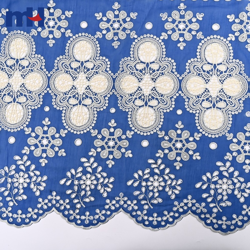 The soft cotton material ensures comfort and breathability, while the intricate embroidery adds sophistication — perfect for fashion garments, dresses, skirts, and statement tops.