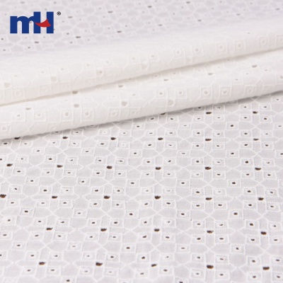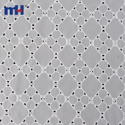 Charming Flower Motif: This fabric features a delicate floral design, with each flower surrounded by a scalloped wave pattern. The eyelet design adds texture and visual interest, creating a fresh and sophisticated look.