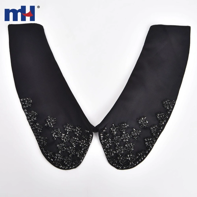 The elegant faux shirt lace collar with rhinestones in black is the perfect accessory to add a touch of sophistication and glamour to any outfit.