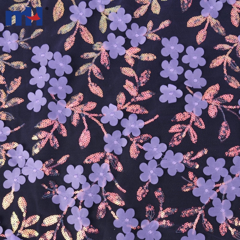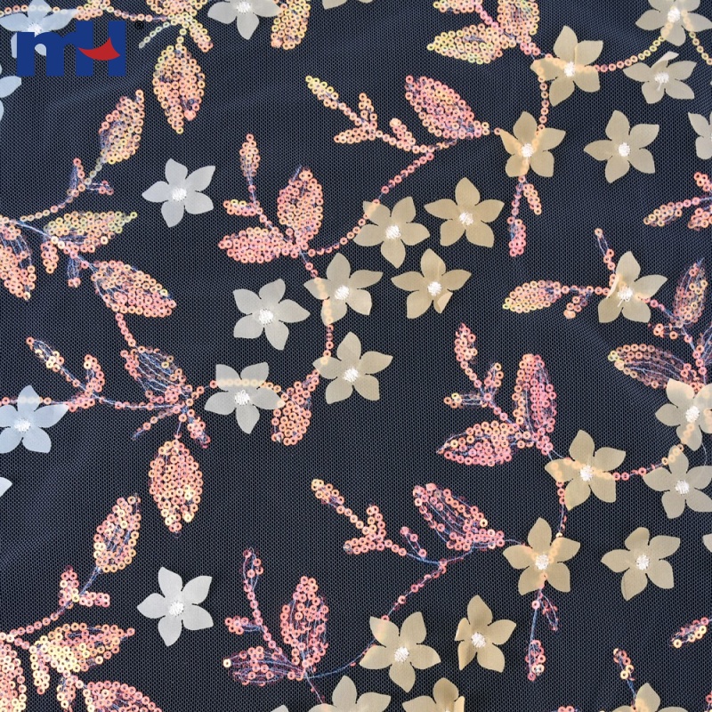 The embroidery is evenly arranged with fine craftsmanship, ensuring durability and flexibility. Ideal for use in gowns, skirts, stage costumes, and decorative overlays, this fabric brings movement and brilliance to every design.