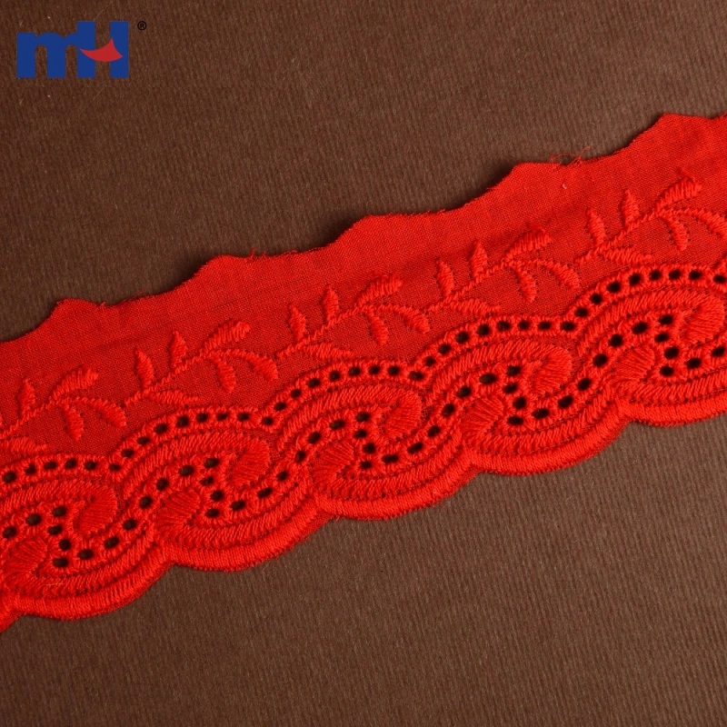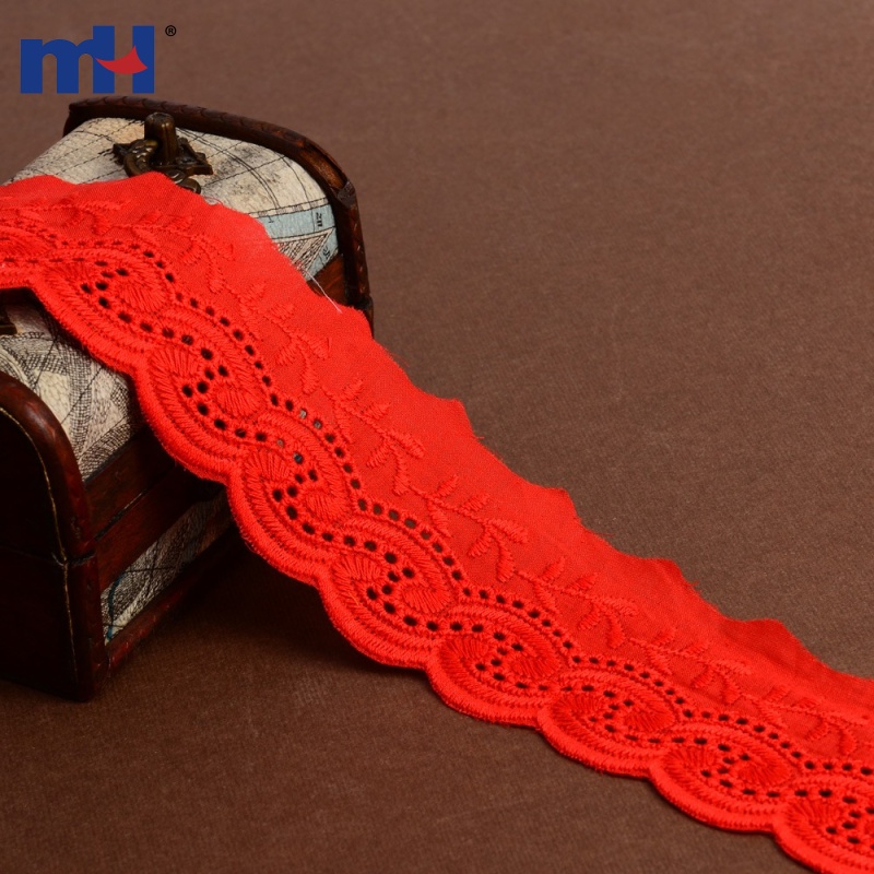 French embroidery Cotton lace Trimming Size: 5.0cm Cotton lace in 100% cotton All kinds of size available upon enquiry. Available in various designs and colors as per buyers requirement.