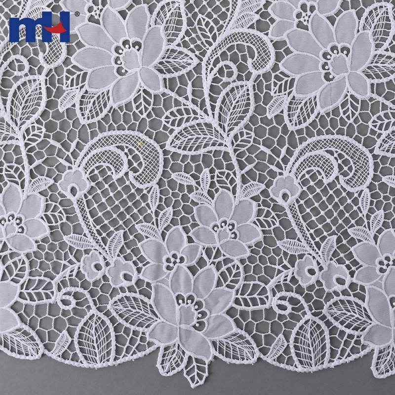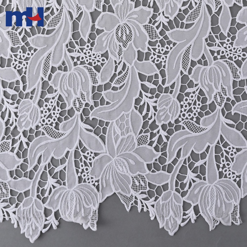 Made from quality fabrics with fine embroidery threads, this lace offers both softness and structure. It is widely used in wedding gowns, evening dresses, fashion apparel, home textiles, and decorative projects.