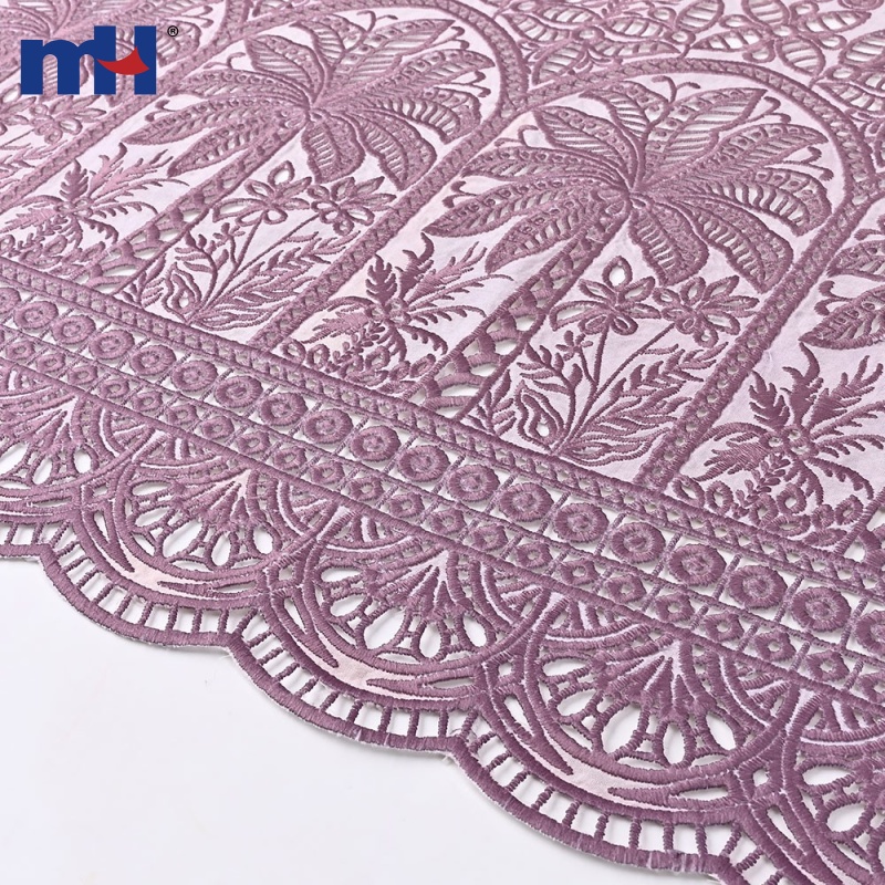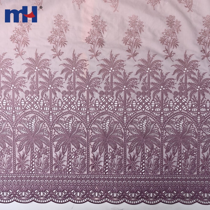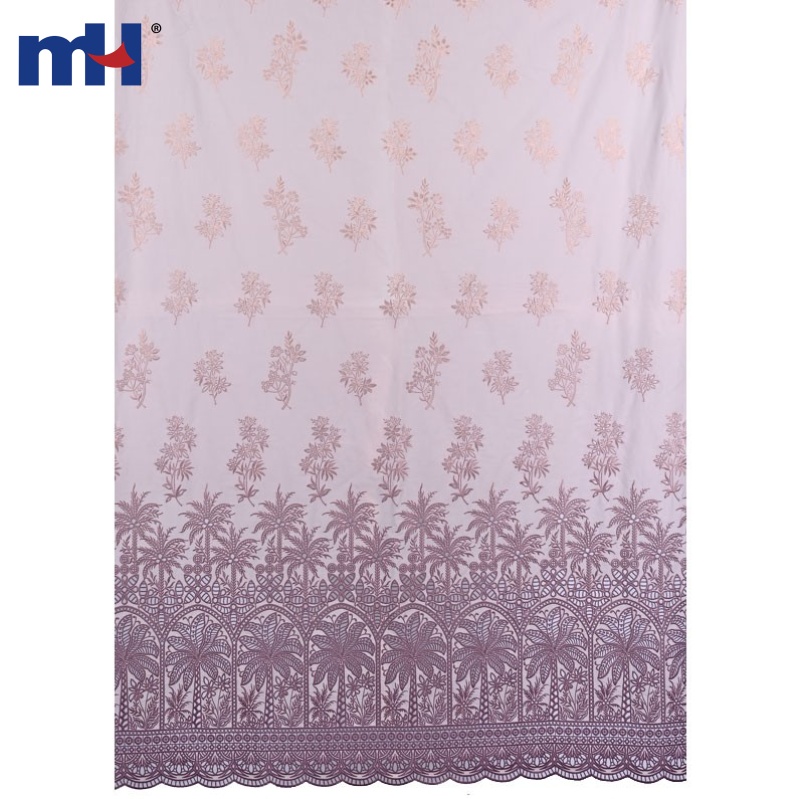 This ombre embroidered lace fabric features a 100% cotton base with elegant floral embroidery and reactive gradient dyeing. Designed for traditional wear in South Asian markets, it offers both ready stock and customizable color options to meet diverse styling needs.